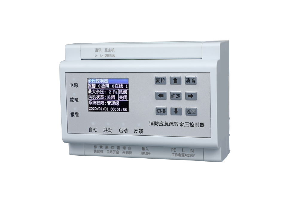 余壓控制器,是用于接收余壓探測器采集到的壓差數據,當余壓探測器監測到壓力值超過規范范圍時,就會上傳信號給余壓控制器,余壓控制器就會通過控制電動執行器聯動旁通閥的開啟或